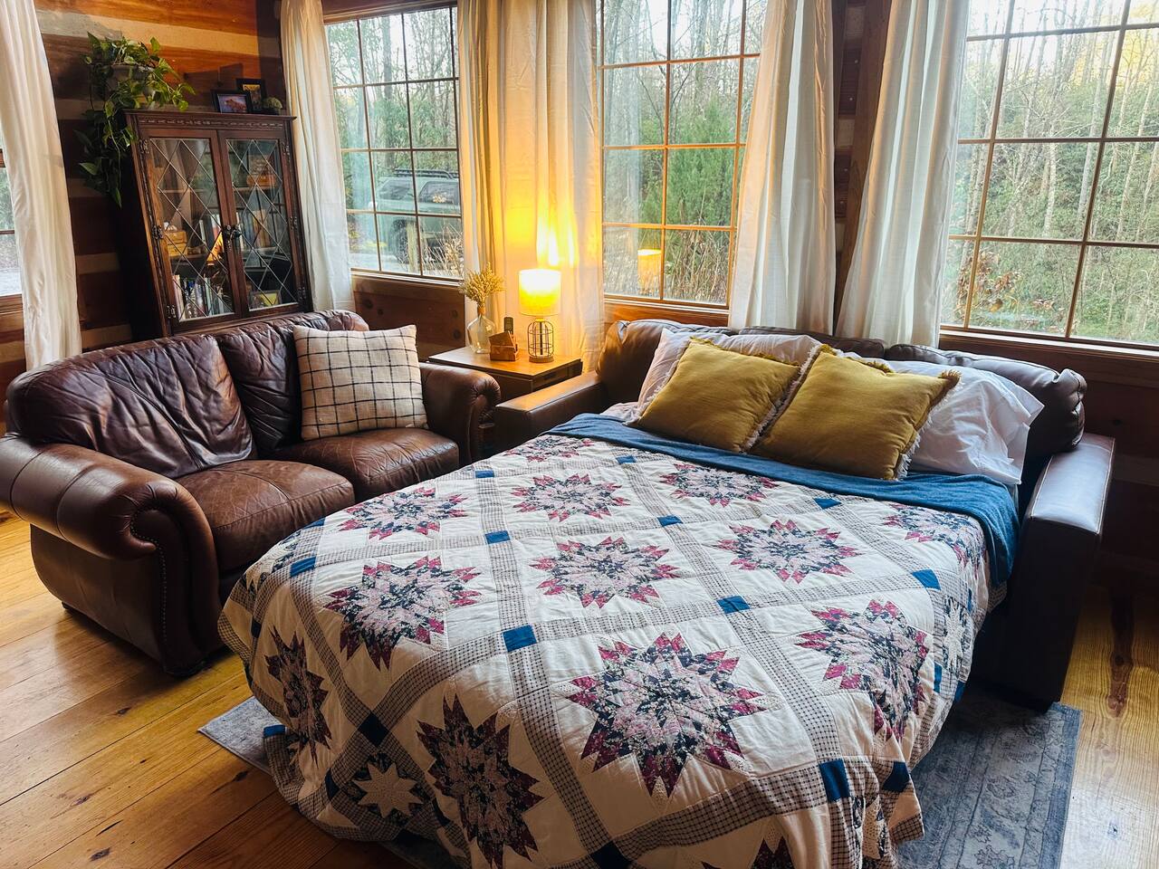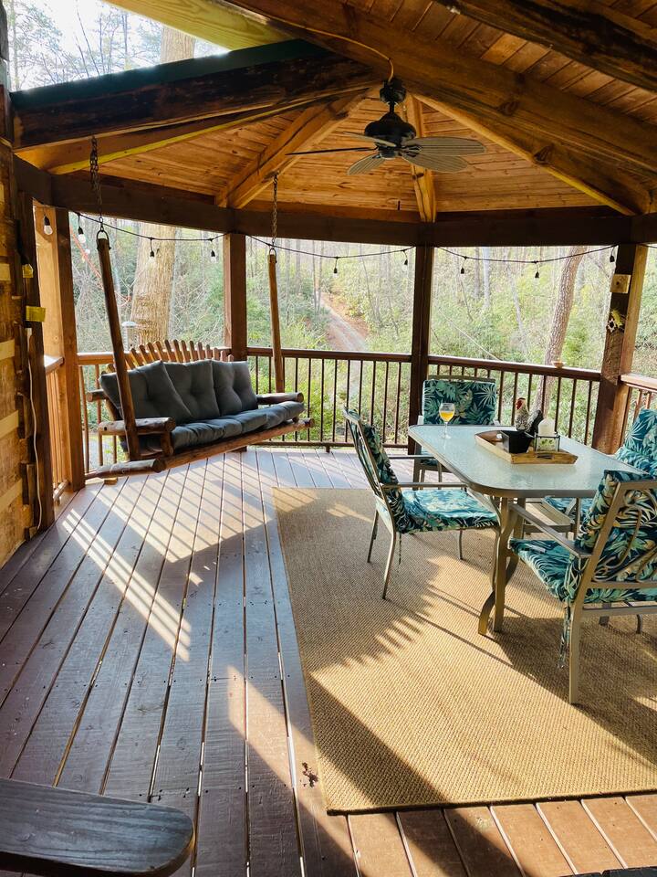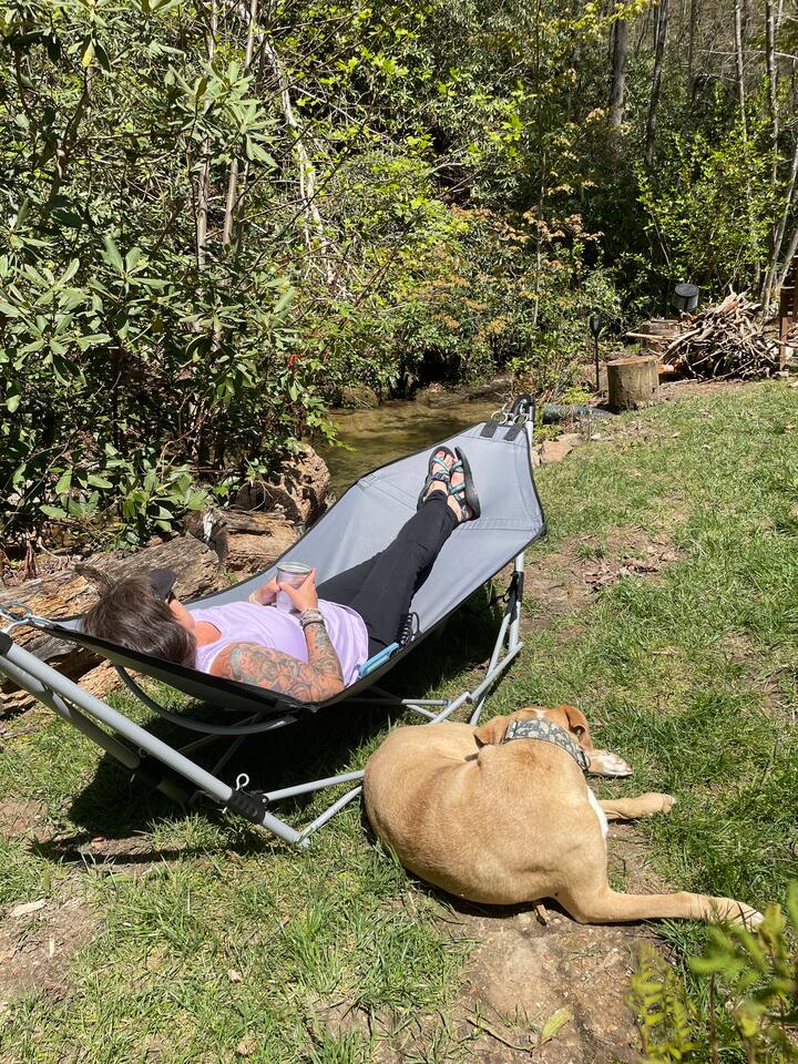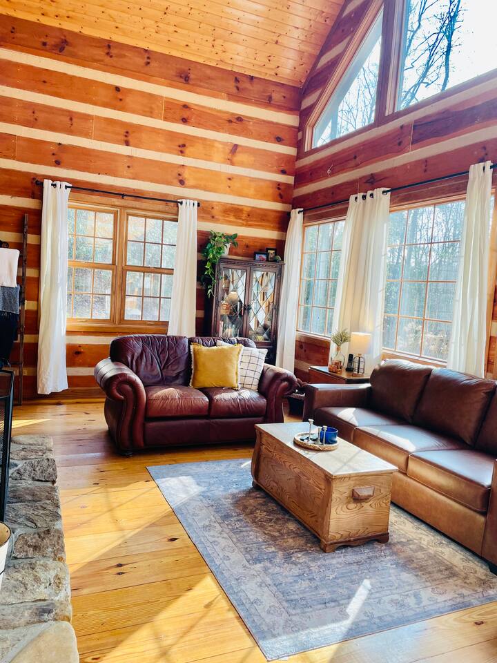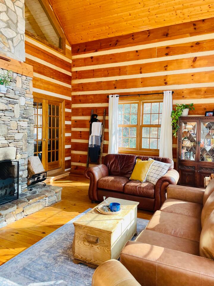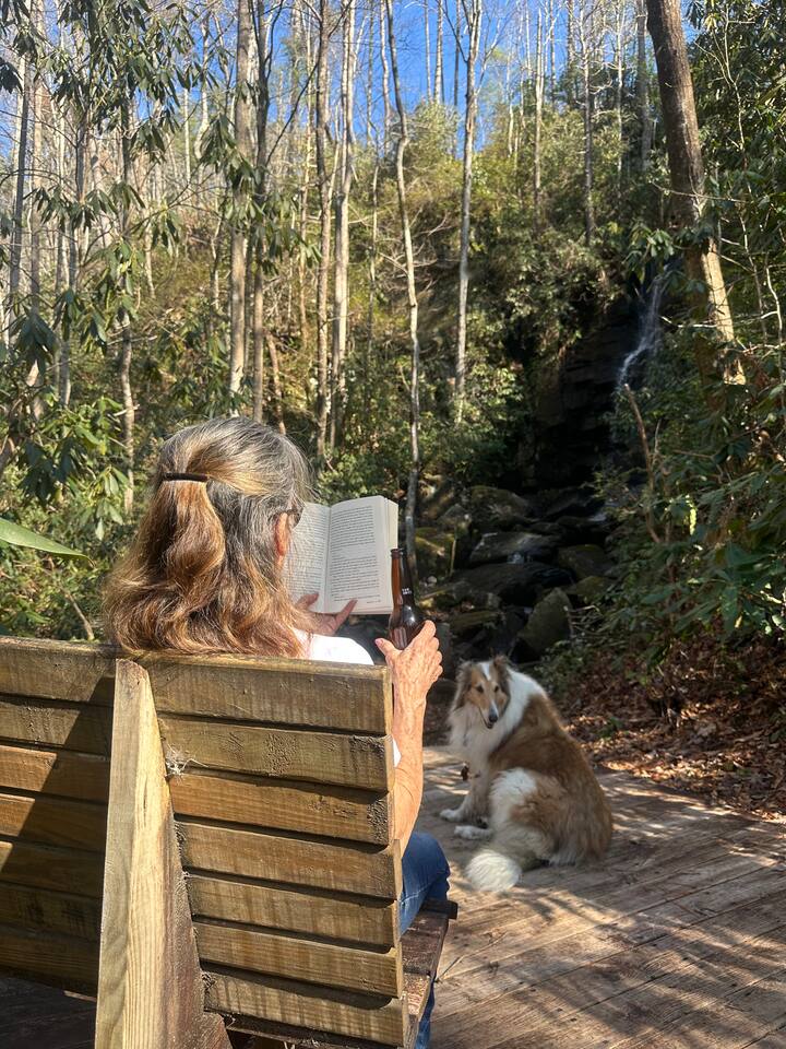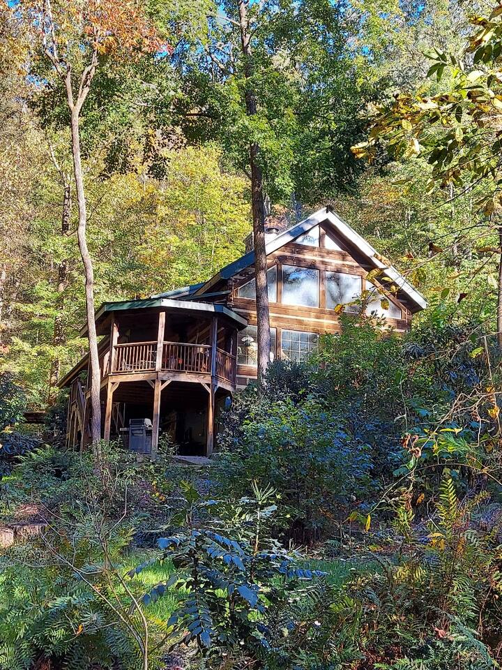 Escape to Brooksong Log Cabin, a secluded and serene retreat in the mountains of Western North Carolina just 30 min from Brevard, NC. Situated on 6 private acres of forest with four streams, and exclusive access to two private waterfalls, this cabin offers the perfect setting to relax, explore, and unwind. Whether you are traveling as a family, a couple, group of friends, or with your pets, this place is great for up to 6 guests.