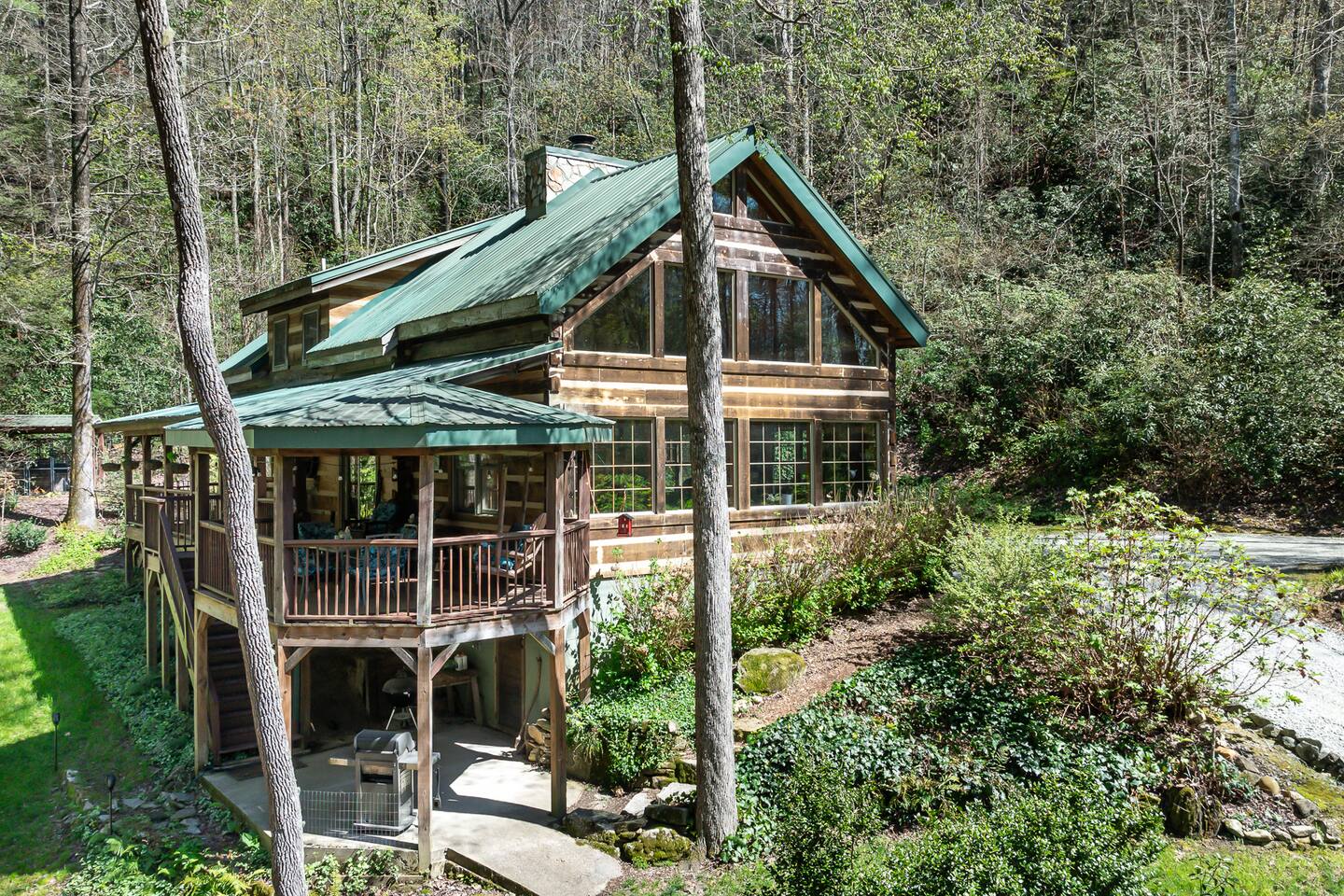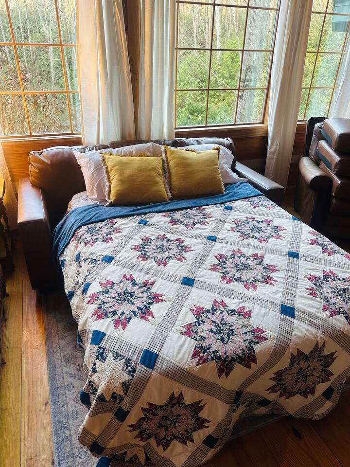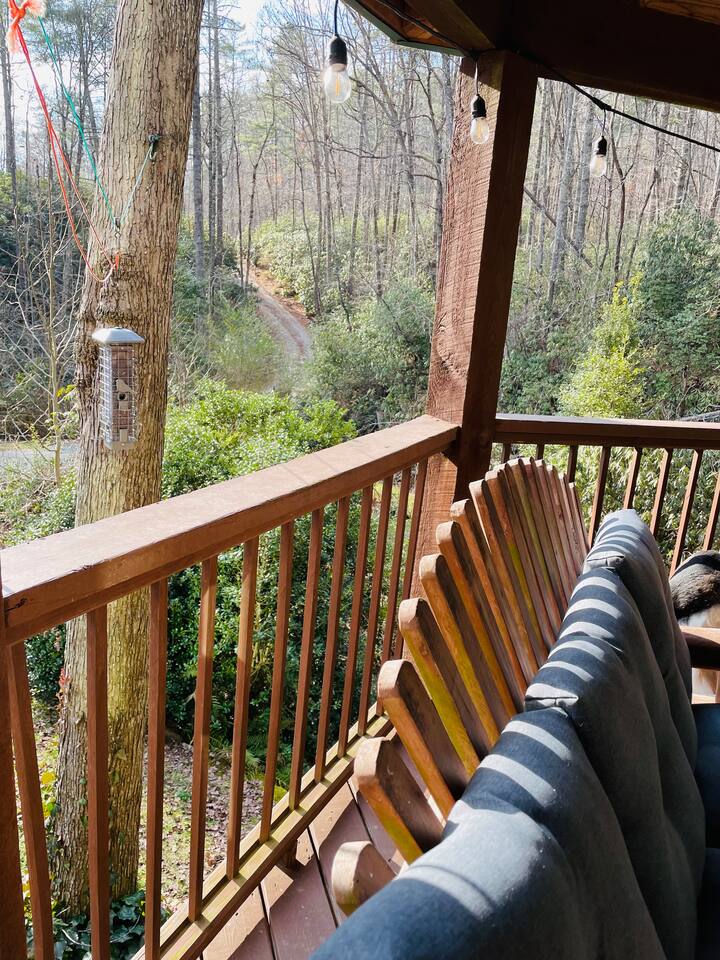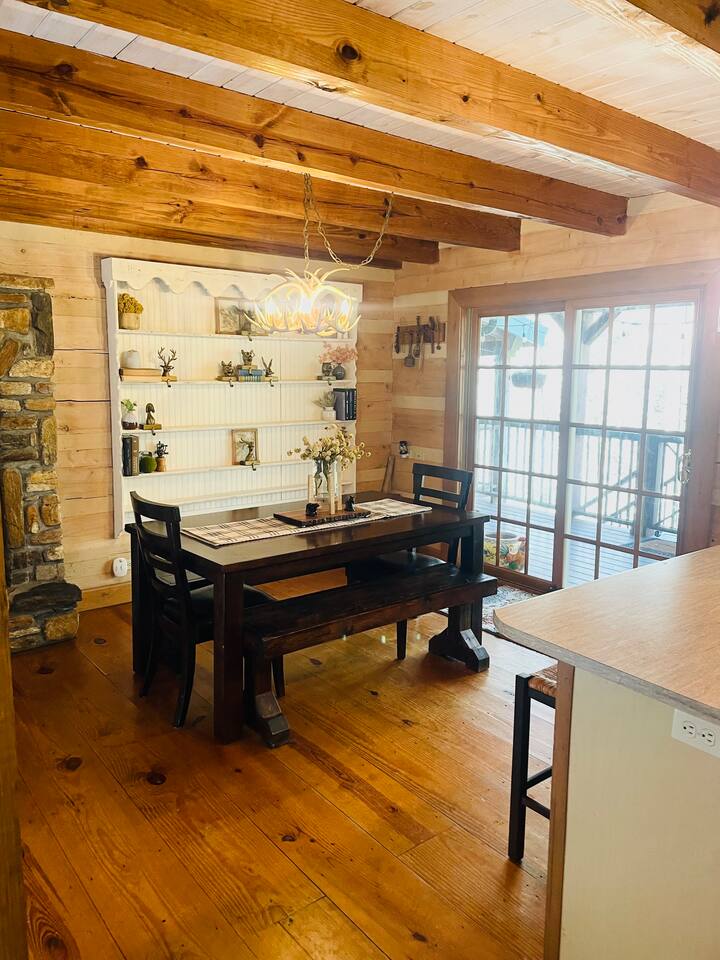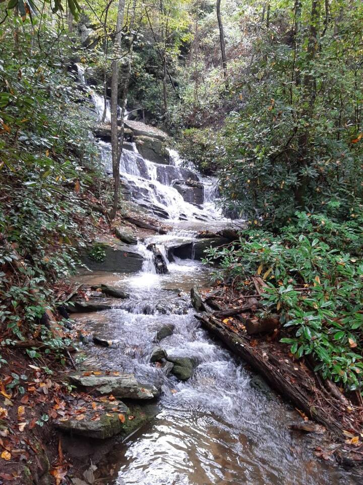 🌄 PEACEFUL, SECLUDED, ALL-NATURAL Leave the hustle and bustle of city life behind and unwind in a private oasis surrounded by lush woods and tranquil streams. With no traffic noise, no crowds, and no distractions, Brooksong offers a true escape into nature—perfect for: ➤ Family Vacations – Kids can explore the forest, splash in the creek, or enjoy games in the loft. ➤ Romantic Getaways – Cozy evenings by the fireplace and stargazing from the deck. ➤ Group Retreats – Gather around the firepit, hike to the private waterfalls, or play board games in the game room. 🌳 OUTDOOR ON-PROPERTY ADVENTURES Step outside and immerse yourself in nature’s paradise! Brooksong offers endless outdoor activities right on the property. Wander along established and marked private trails that wind through the woods, past streams, and toward the two waterfalls. Pack a picnic and dine by the creek, or find a quiet spot to meditate, journal, or simply listen to the birds singing overhead. ➤ 6 Acres of Natural Forest Habitat – Explore Brooksong’s dense forests by taking a secluded trek along the established winding paths scattered throughout the property – perfect for those that enjoy long walks or adventurous hikes. ➤ Two Private Waterfalls – Discover Bearpen Falls and Cascade Falls, accessible only to Brooksong guests. Enjoy peaceful moments at the viewing platform with benches and a Solo Stove—perfect for morning coffee or evening cocktails by a fire. ➤ Four Flowing Streams – Stroll along the babbling creeks, splash around with the kids, or let your dogs roam off-leash. 🐦 BIRDWATCHING & WILDLIFE ADVENTURES Nature lovers will feel right at home with endless opportunities for birdwatching and spotting local wildlife: ➤ Birdwatching Hotspot – Watch for songbirds, woodpeckers, and hummingbirds. ➤ Wildlife Encounters – Keep an eye out for white-tailed deer, foxes, rabbits, and playful squirrels (yes, even some of Brevard’s famous white squirrels live here!). In the summer months, watch the woods for synchronous and Blue Ghost fireflies. ➤ Seasonal Blooms & Flora – Discover native wildflowers like local Rhododendron, Mountain Laurel, and Flame Azaleas 🌺OUTDOOR RELAXING Brooksong Log Cabin offers an array of inviting outdoor spaces, perfect for immersing yourself in the natural beauty of the mountains. ➤ BBQ Grill and Outdoor Dining – Fire up the BBQ grill and enjoy an outdoor Wooden Deck with Dining Space, Rockers, and Porch Swing – Enjoy al fresco dining surrounded by nature at the outdoor dining table or enjoy stream sounds from the rockers or porch swing. ➤ Hammock by the Creek – Nap, read a book, or listen to the soothing sound of flowing water. ➤ Firepit by the Creek – Gather for s’mores, stories, and starlit nights with the sound of the stream nearby. ➤ Solo Stove by Bearpen Falls– Enjoy a cozy smokeless fire while enjoying the sight and sound of your private 25' waterfall ➤ Community Fishing Pond – Guests also have access to a community pond—stocked with fish and perfect for catch-and-release fishing. Great for kids and adults alike! 🏡 INDOOR COMFORT & AMENITIES Brooksong combines log-cabin charm with modern amenities, ensuring your stay is both cozy and comfortable. ➤ Spacious Living Room – Relax by the wood-burning fireplace with vaulted ceilings, large windows, and cozy leather seating. ➤ Smart TV Entertainment Area – Catch up on your favorite shows or enjoy a movie night with friends and family. ➤ Modern Bathrooms – Enjoy spa-like amenities with bathtubs, a bidet, and toiletries are provided. ➤ Open-Style Kitchen – Cook up delicious meals in the fully equipped kitchen, complete with: * Refrigerator, oven, dishwasher, microwave * Coffee maker, blender, toaster, and wine glasses * Cooking basics and spices provided ➤ Air Conditioning & Heating – Stay cool in summer and warm in winter with central air and heating systems. ➤ High-Speed Starlink Satellite Internet – Perfect for streaming, remote work, or staying connected. ➤ Laundry Facilities – Includes washer and dryer. Whether you’re relaxing by the fireplace, enjoying a movie in the sunroom or preparing meals in the modern kitchen, Brooksong offers all the comforts of home. 🎮 INDOOR FUN - GAMEROOM & LOUNGE The game room in the loft is a kid’s paradise and great grown-up hangout space. ➤ Games & Entertainment: Foosball, mini-ping pong, mini pool table, and carrom/striker table. ➤ Relaxation Area: Includes a double futon bed for extra sleeping space. 💻 DEDICATED WORKSTATION & REMOTE OFFICE SETUP Need to stay connected while enjoying your retreat? Brooksong offers a dedicated workstation located in the game room loft—perfect for remote work and virtual meetings. ➤ High-Speed Starlink Satellite Internet– Reliable and fast internet access. ➤ Comfortable Desk & Chair Setup – Ideal for work-from-home setups. ➤ Peaceful Atmosphere – Enjoy views of the forest while staying productive. 🛏️ COZY BEDROOMS & FLEXIBLE SLEEPING ARRANGEMENTS The cabin offers 3 dedicated sleeping spaces and multiple sleeping options to ensure a restful night for every guest. ➤ Master Bedroom (Upstairs - Sleeps 2): • Features a king-sized bed with comfortable bedding, perfect for relaxing after a day of outdoor adventures. * Adjacent to a private bathroom and shower/tub combo, and laundry room equipped with modern amenities ➤ Second Bedroom(Downstairs - Sleeps 2): * Offers a queen-sized bed and a large closet for extra storage. * Located near the second bathroom with a bathtub—perfect for families with young children. ➤ Loft Area (Upstairs - Sleeps 2): * Features a double futon– ideal for kids, teens, or extra guests. * Includes a desk and chair for remote work or journaling. ➤ Sunroom (Downstairs - Sleeps 2) * The sunroom is one of the highlights of the cabin, featuring two-story windows with forest views and a queen-sized sleeper 