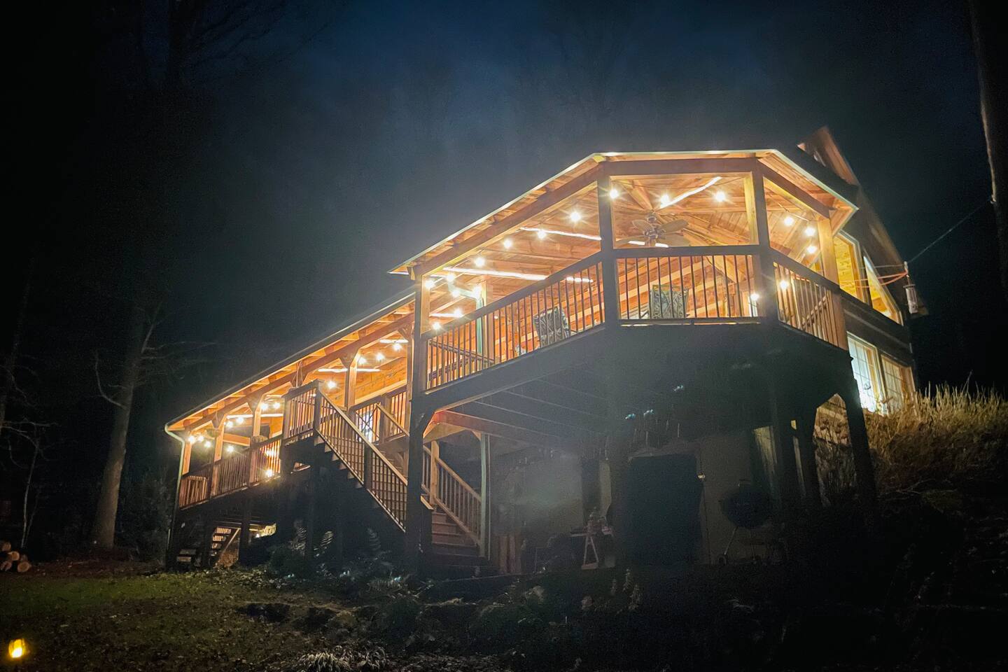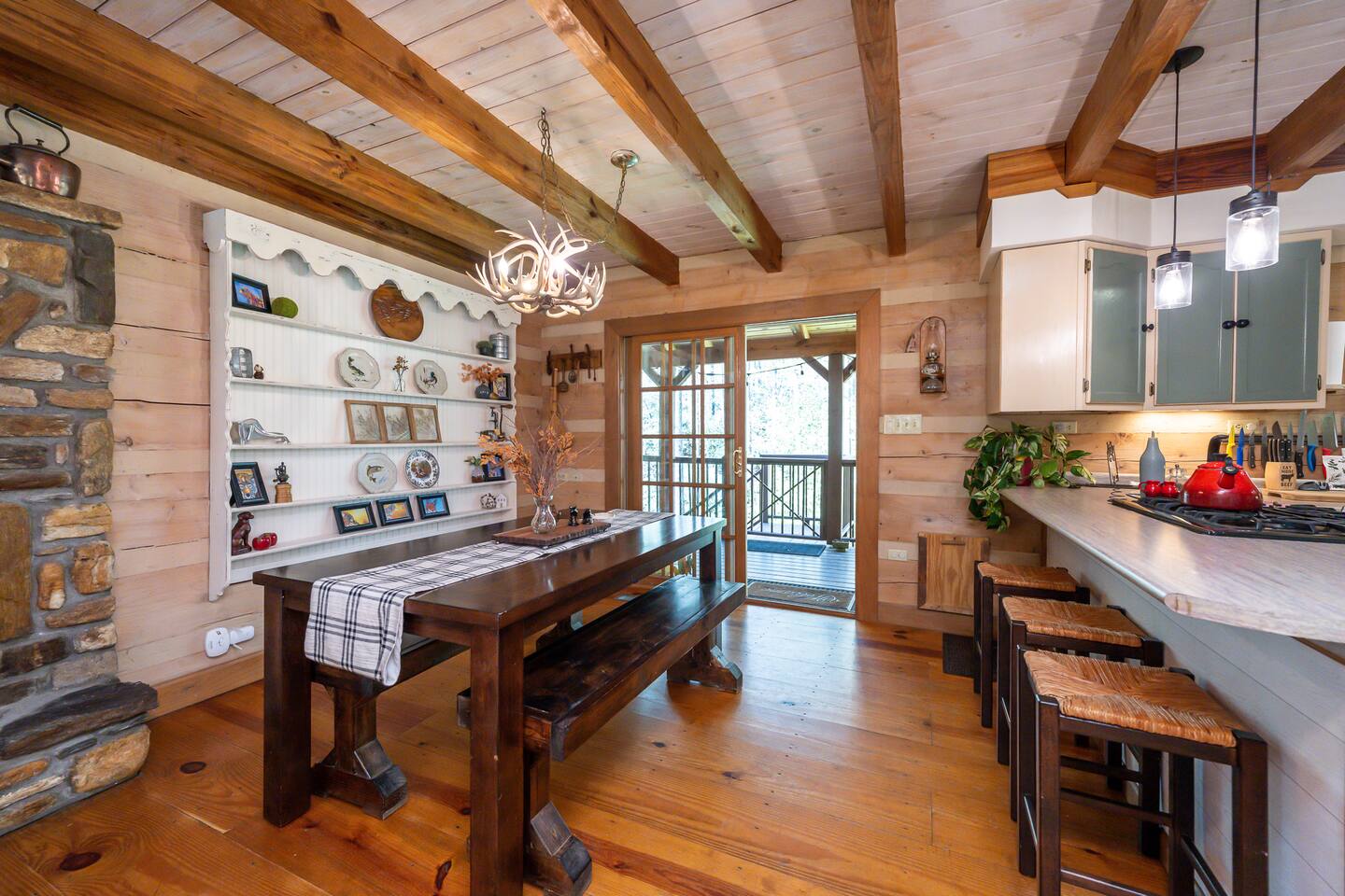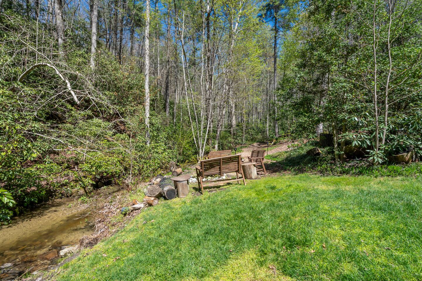 🌄 PEACEFUL, SECLUDED, ALL-NATURAL Leave the hustle and bustle of city life behind and unwind in a private oasis surrounded by lush woods and tranquil streams. With no traffic noise, no crowds, and no distractions, Brooksong offers a true escape into nature—perfect for: ➤ Family Vacations – Kids can explore the forest, splash in the creek, or enjoy games in the loft. ➤ Romantic Getaways – Cozy evenings by the fireplace and stargazing from the deck. ➤ Group Retreats – Gather around the firepit, hike to the private waterfalls, or play board games in the game room. 🌳 OUTDOOR ON-PROPERTY ADVENTURES Step outside and immerse yourself in nature’s paradise! Brooksong offers endless outdoor activities right on the property. Wander along established and marked private trails that wind through the woods, past streams, and toward the two waterfalls. Pack a picnic and dine by the creek, or find a quiet spot to meditate, journal, or simply listen to the birds singing overhead. ➤ 6 Acres of Natural Forest Habitat – Explore Brooksong’s dense forests by taking a secluded trek along the established winding paths scattered throughout the property – perfect for those that enjoy long walks or adventurous hikes. ➤ Two Private Waterfalls – Discover Bearpen Falls and Cascade Falls, accessible only to Brooksong guests. Enjoy peaceful moments at the viewing platform with benches and a Solo Stove—perfect for morning coffee or evening cocktails by a fire. ➤ Four Flowing Streams – Stroll along the babbling creeks, splash around with the kids, or let your dogs roam off-leash. 🐦 BIRDWATCHING & WILDLIFE ADVENTURES Nature lovers will feel right at home with endless opportunities for birdwatching and spotting local wildlife: ➤ Birdwatching Hotspot – Watch for songbirds, woodpeckers, and hummingbirds. ➤ Wildlife Encounters – Keep an eye out for white-tailed deer, foxes, rabbits, and playful squirrels (yes, even some of Brevard’s famous white squirrels live here!). In the summer months, watch the woods for synchronous and Blue Ghost fireflies. ➤ Seasonal Blooms & Flora – Discover native wildflowers like local Rhododendron, Mountain Laurel, and Flame Azaleas 🌺OUTDOOR RELAXING Brooksong Log Cabin offers an array of inviting outdoor spaces, perfect for immersing yourself in the natural beauty of the mountains. ➤ BBQ Grill and Outdoor Dining – Fire up the BBQ grill and enjoy an outdoor Wooden Deck with Dining Space, Rockers, and Porch Swing – Enjoy al fresco dining surrounded by nature at the outdoor dining table or enjoy stream sounds from the rockers or porch swing. ➤ Hammock by the Creek – Nap, read a book, or listen to the soothing sound of flowing water. ➤ Firepit by the Creek – Gather for s’mores, stories, and starlit nights with the sound of the stream nearby. ➤ Solo Stove by Bearpen Falls– Enjoy a cozy smokeless fire while enjoying the sight and sound of your private 25' waterfall ➤ Community Fishing Pond – Guests also have access to a community pond—stocked with fish and perfect for catch-and-release fishing. Great for kids and adults alike! 🏡 INDOOR COMFORT & AMENITIES Brooksong combines log-cabin charm with modern amenities, ensuring your stay is both cozy and comfortable. ➤ Spacious Living Room – Relax by the wood-burning fireplace with vaulted ceilings, large windows, and cozy leather seating. ➤ Smart TV Entertainment Area – Catch up on your favorite shows or enjoy a movie night with friends and family. ➤ Modern Bathrooms – Enjoy spa-like amenities with bathtubs, a bidet, and toiletries are provided. ➤ Open-Style Kitchen – Cook up delicious meals in the fully equipped kitchen, complete with: * Refrigerator, oven, dishwasher, microwave * Coffee maker, blender, toaster, and wine glasses * Cooking basics and spices provided ➤ Air Conditioning & Heating – Stay cool in summer and warm in winter with central air and heating systems. ➤ High-Speed Starlink Satellite Internet – Perfect for streaming, remote work, or staying connected. ➤ Laundry Facilities – Includes washer and dryer. Whether you’re relaxing by the fireplace, enjoying a movie in the sunroom or preparing meals in the modern kitchen, Brooksong offers all the comforts of home. 🎮 INDOOR FUN - GAMEROOM & LOUNGE The game room in the loft is a kid’s paradise and great grown-up hangout space. ➤ Games & Entertainment: Foosball, mini-ping pong, mini pool table, and carrom/striker table. ➤ Relaxation Area: Includes a double futon bed for extra sleeping space. 💻 DEDICATED WORKSTATION & REMOTE OFFICE SETUP Need to stay connected while enjoying your retreat? Brooksong offers a dedicated workstation located in the game room loft—perfect for remote work and virtual meetings. ➤ High-Speed Starlink Satellite Internet– Reliable and fast internet access. ➤ Comfortable Desk & Chair Setup – Ideal for work-from-home setups. ➤ Peaceful Atmosphere – Enjoy views of the forest while staying productive. 🛏️ COZY BEDROOMS & FLEXIBLE SLEEPING ARRANGEMENTS The cabin offers 3 dedicated sleeping spaces and multiple sleeping options to ensure a restful night for every guest. ➤ Master Bedroom (Upstairs - Sleeps 2): • Features a king-sized bed with comfortable bedding, perfect for relaxing after a day of outdoor adventures. * Adjacent to a private bathroom and shower/tub combo, and laundry room equipped with modern amenities ➤ Second Bedroom(Downstairs - Sleeps 2): * Offers a queen-sized bed and a large closet for extra storage. * Located near the second bathroom with a bathtub—perfect for families with young children. ➤ Loft Area (Upstairs - Sleeps 2): * Features a double futon– ideal for kids, teens, or extra guests. * Includes a desk and chair for remote work or journaling. ➤ Sunroom (Downstairs - Sleeps 2) * The sunroom is one of the highlights of the cabin, featuring two-story windows with forest views and a queen-sized sleeper 